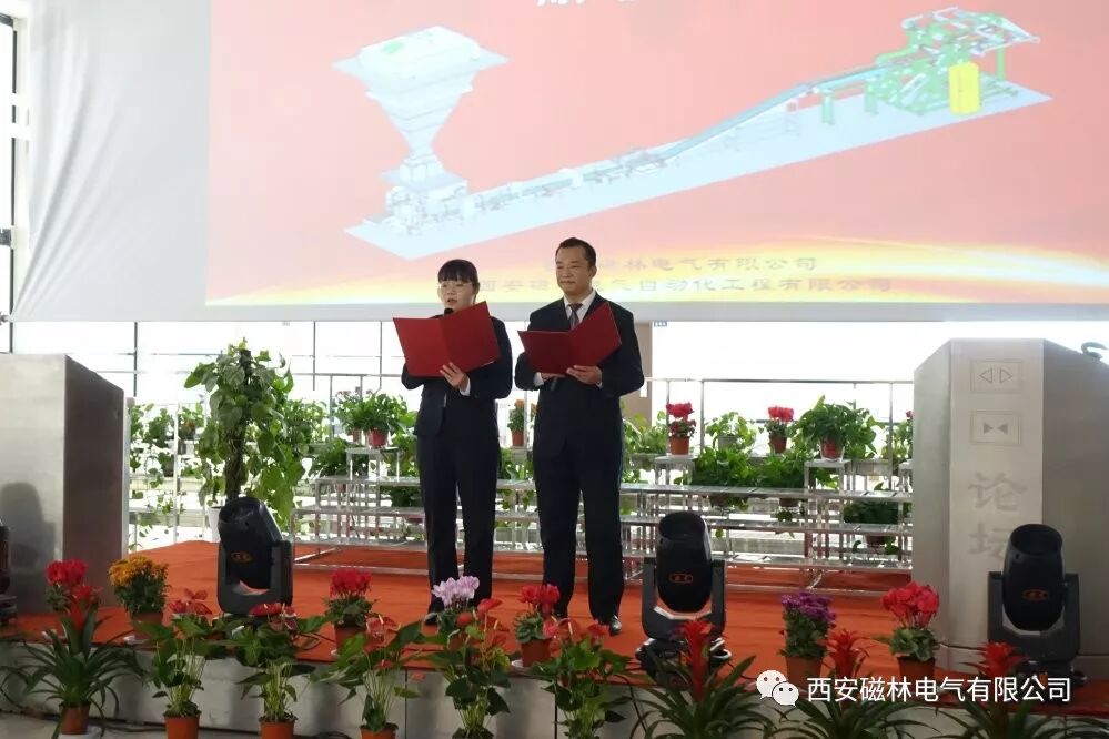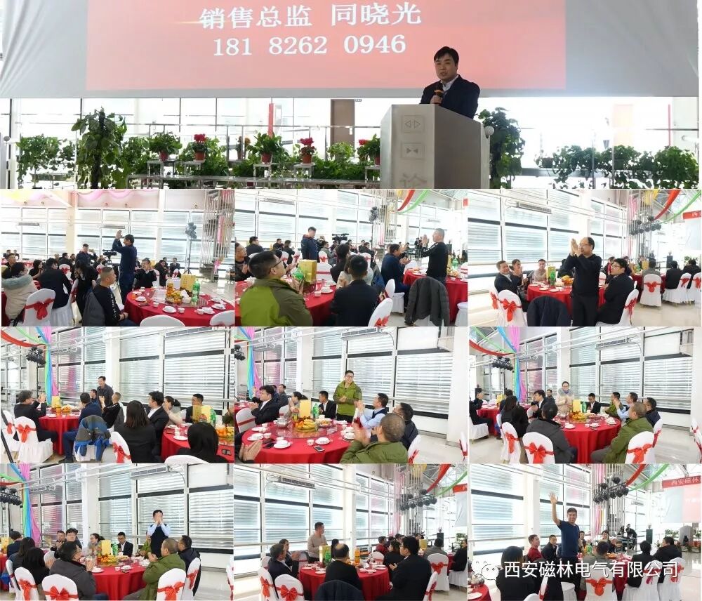 6、参会代表与磁林员工合影留念,之后参观“丝路驿站—水晶棚—示范工程”的创新、开关论坛开关奖的设立及磁林品牌与文化,随后去生产现场观看MF2019NT全自动包装机的带料演示